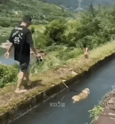 한마리는 수영을 좋아하고 한마리는 걷는걸 좋아할 때 산…