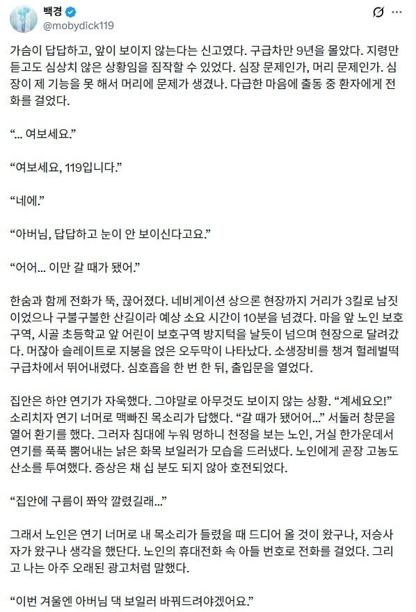 갈때가 된 것 같다는 노인의 119 신고전화.jpg 버디버디 0 348 0 5시간전 link URL 복사: https://joy.humorpick.com/bbs/board.php?bo_table=humor&wr_id=397698 심각한데 마지막에 ㅎㅎ.. 0