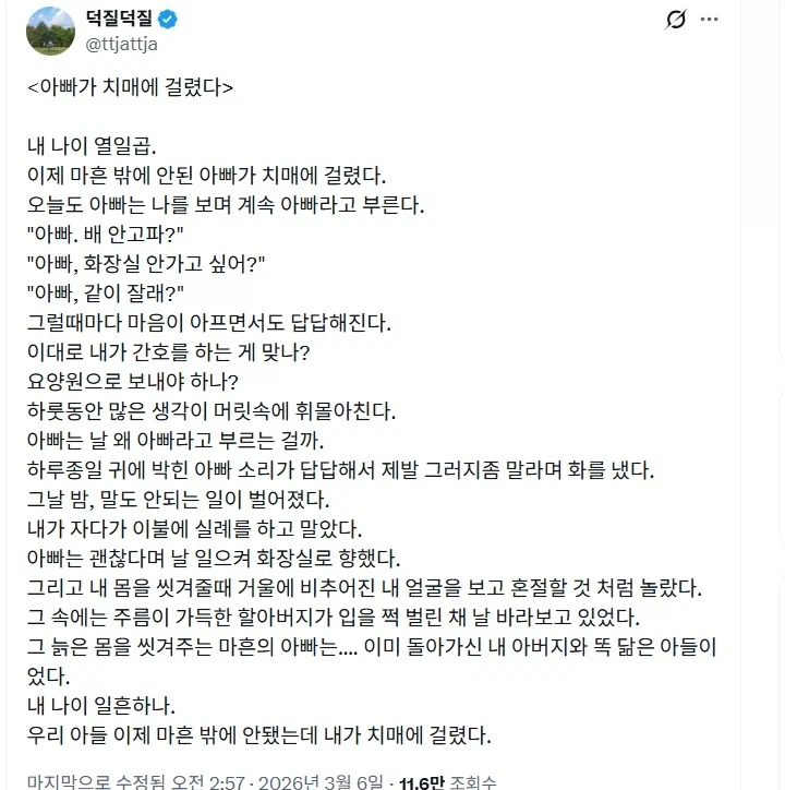 내 나이 열일곱, 아빠가 치매에 걸렸다 오크대장 0 355 0 03.09 02:17 link URL 복사: https://joy.humorpick.com/bbs/board.php?bo_table=humor&wr_id=404656 0