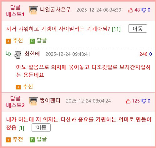 용도를 모른다는 18세기 의자 푸른바다 0 291 0 2시간전 link URL 복사: https://joy.humorpick.com/bbs/board.php?bo_table=humor&wr_id=398369 이 문장이 보이면 video 태그를 지원 하지 않는 브라우저 입니다.이 문장이 보이면 video 태그를 지원 하지 않는 브라우저 입니다. 0