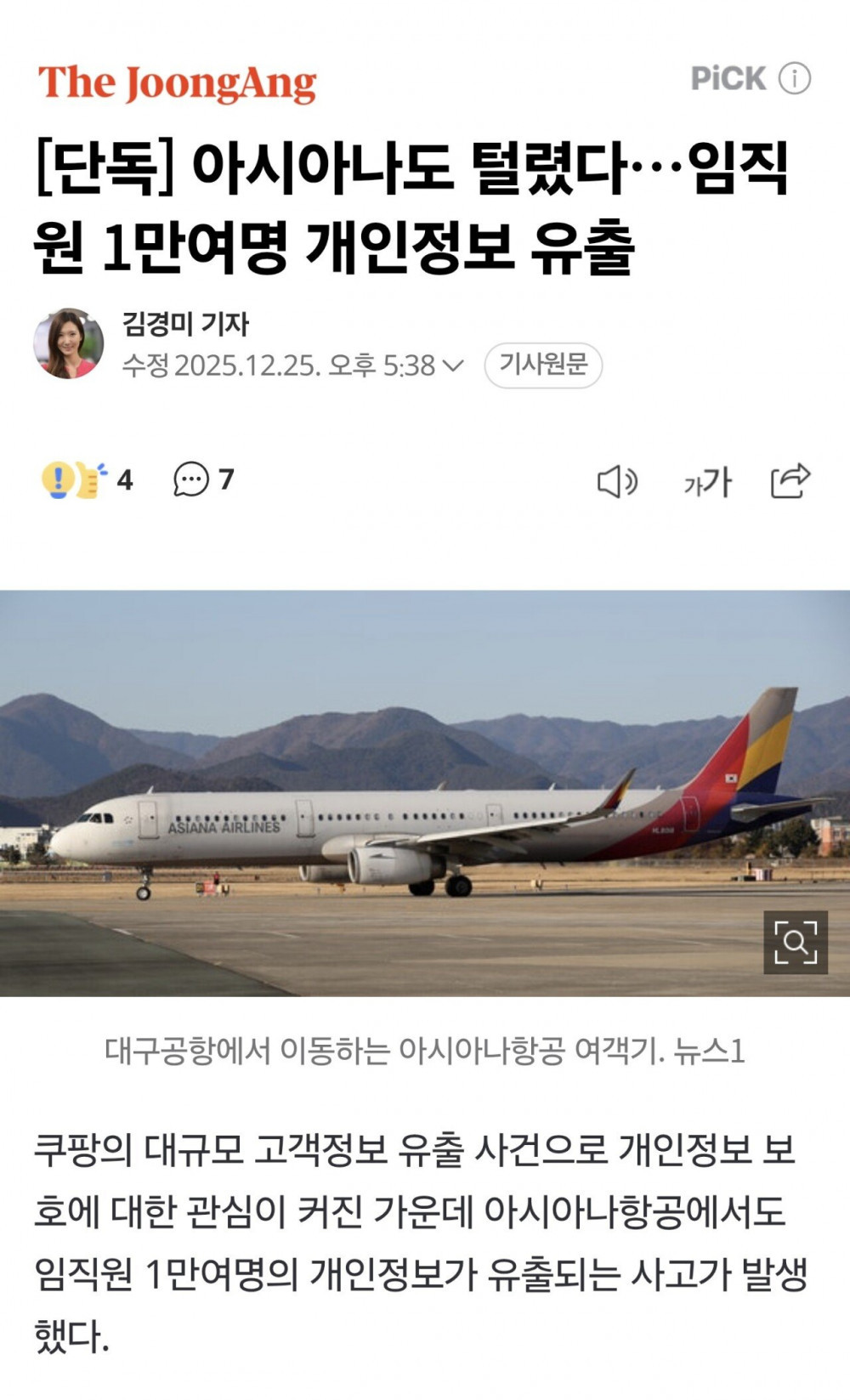 아시아나도 털렸다…임직원 1만여명 개인정보 유출 아라셀리 0 167 0 2시간전 link URL 복사: https://joy.humorpick.com/bbs/board.php?bo_table=humor&wr_id=398385 https://n.news.naver.com/article/025/0003492357?sid=101 0