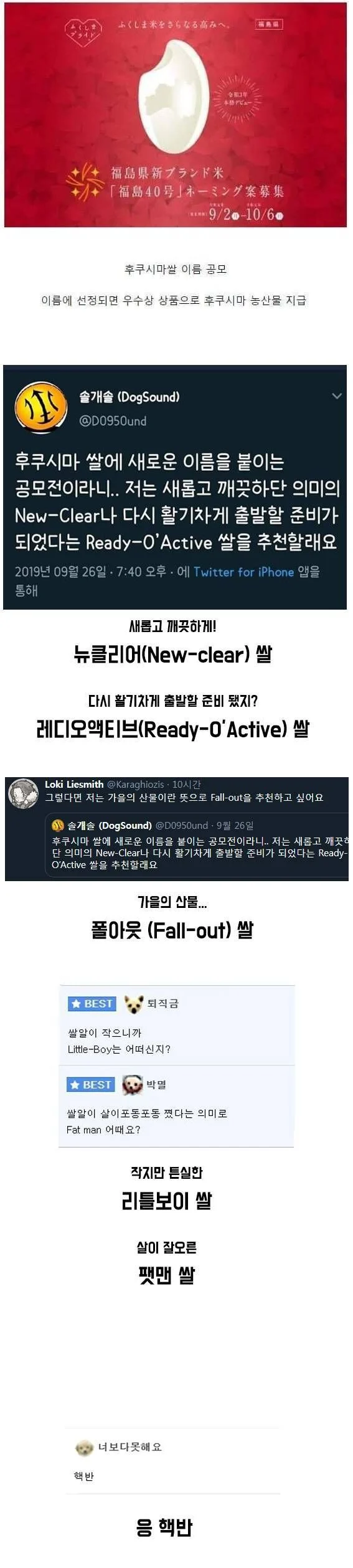 후쿠시마 쌀을 위해 이름을 지어주세요! 슬라임 0 212 0 2시간전 link URL 복사: https://joy.humorpick.com/bbs/board.php?bo_table=humor&wr_id=398489 0