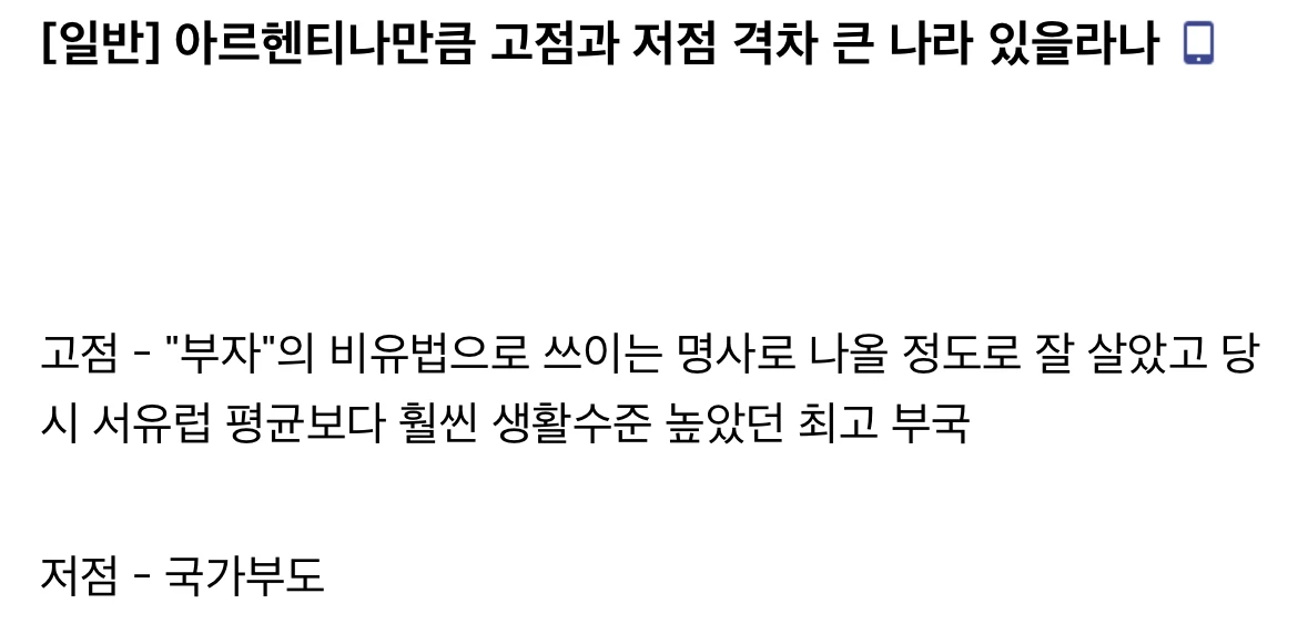 고점과 저점이 모두 역대급인 나라.jpg 오크대장 0 88 0 2시간전 link URL 복사: https://joy.humorpick.com/bbs/board.php?bo_table=humor&wr_id=398575 잘나갈땐 부유의 상징못나갈땐 심심하면 국가부도 터지는 곳ㅋㅋㅋ 0