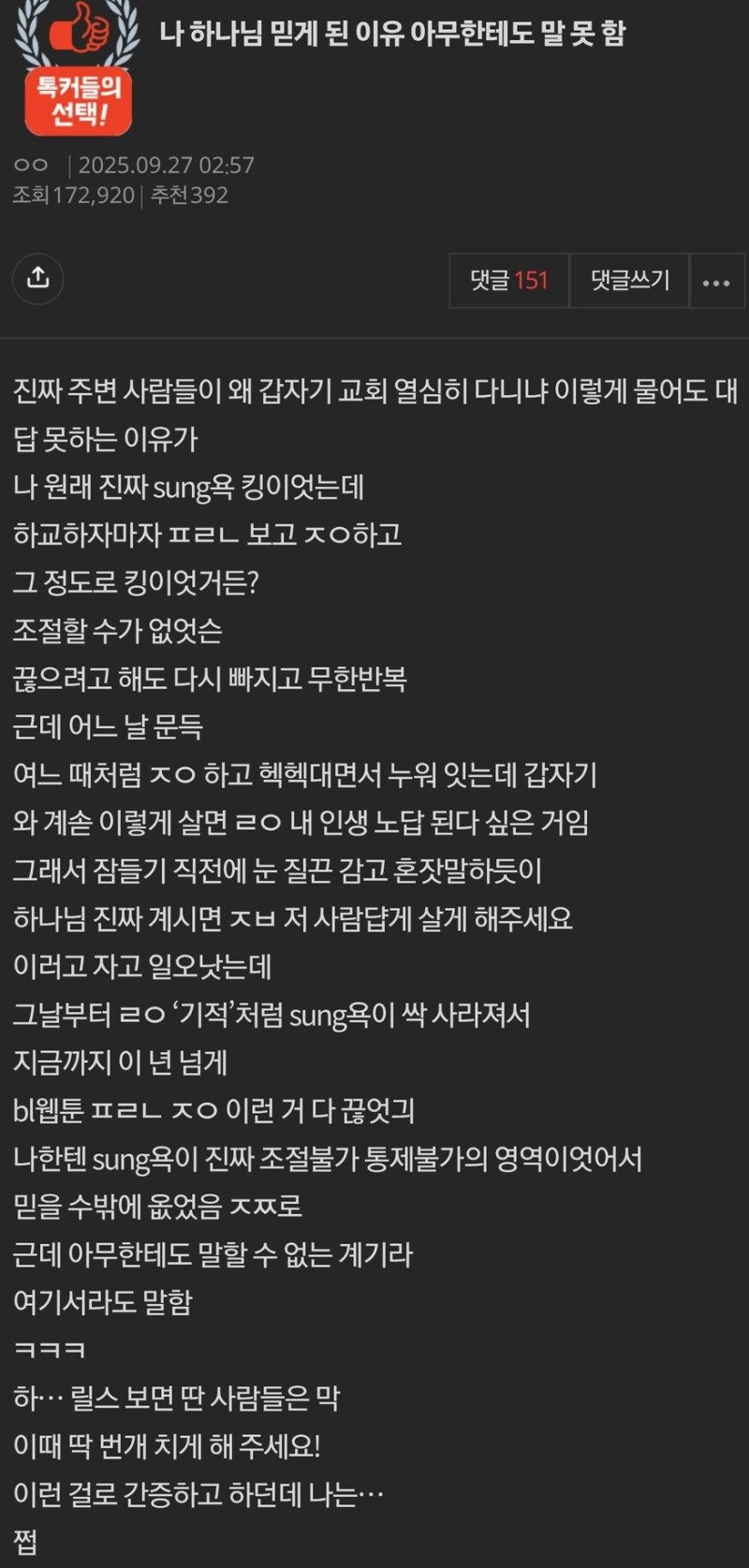 나 하나님 믿게 된 이유 아무한테도 말 못 함.jpg 몽둥이 0 146 0 2시간전 link URL 복사: https://joy.humorpick.com/bbs/board.php?bo_table=humor&wr_id=398602 네이트판 찬반좌댓글) 목사소리보다 신약성경말씀을 우선시 한다면 괜찮을지도 0