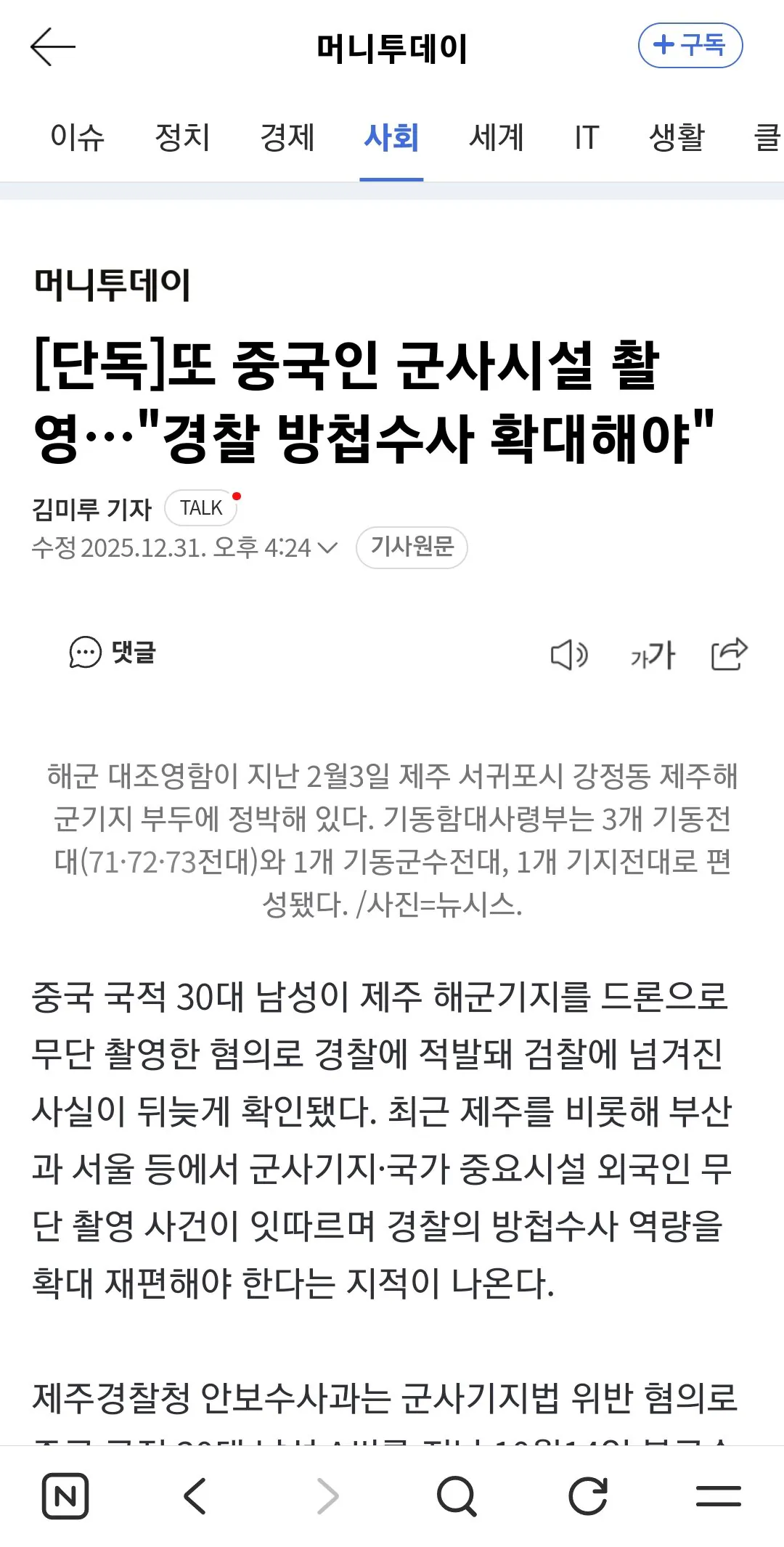 또 중국인 군사시설 촬영하다 적발 소밀면 0 108 0 2시간전 link URL 복사: https://joy.humorpick.com/bbs/board.php?bo_table=humor&wr_id=399794 또 중국인 군사시설 촬영하다 적발 곧 전쟁나는건 아닐지 큰일이네여 0