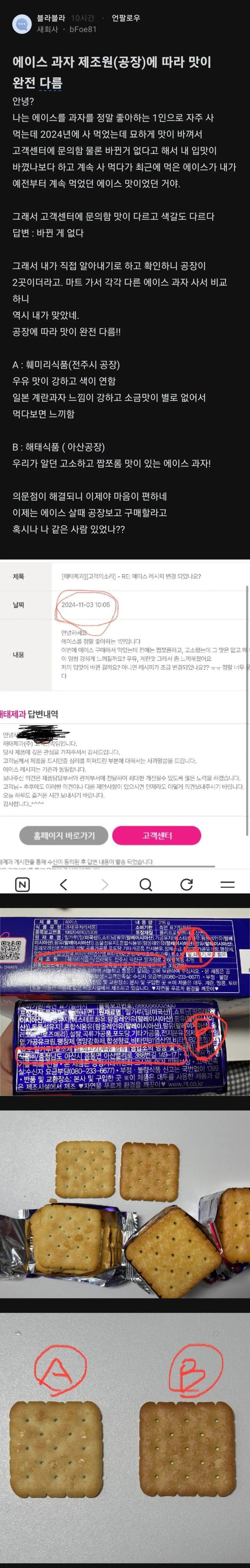 에이스 공장별 맛 차이 (feat. 광기의 절대미각) 오크대장 0 186 0 2시간전 link URL 복사: https://joy.humorpick.com/bbs/board.php?bo_table=humor&wr_id=400479 이상하게 에이스를 먹으면 속이 불편해서 안먹은 지 꽤 되는데 이것도 공장 따라서 다르려나 0