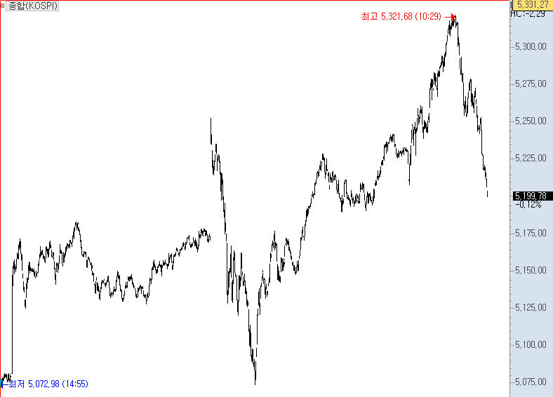 코스피 5300 달성 후 빠르게 5200선까지 위협중