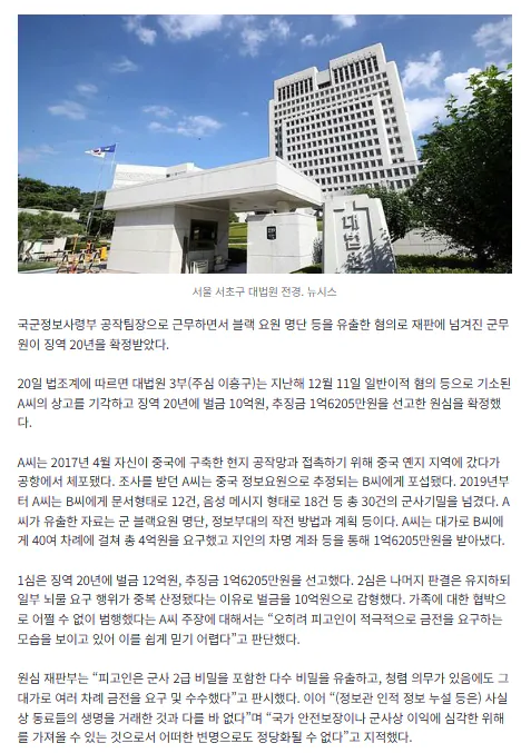 블랙요원 명단 유출 정보사 군무원 징역 20년 확정 아기물티슈 0 39 0 2시간전 link URL 복사: https://joy.humorpick.com/bbs/board.php?bo_table=humor&wr_id=401568 블랙요원 명단 유출 정보사 군무원 징역 20년 확정 블랙요원들 총살 당했을건데 고작 20년 ㄷㄷㄷ 0