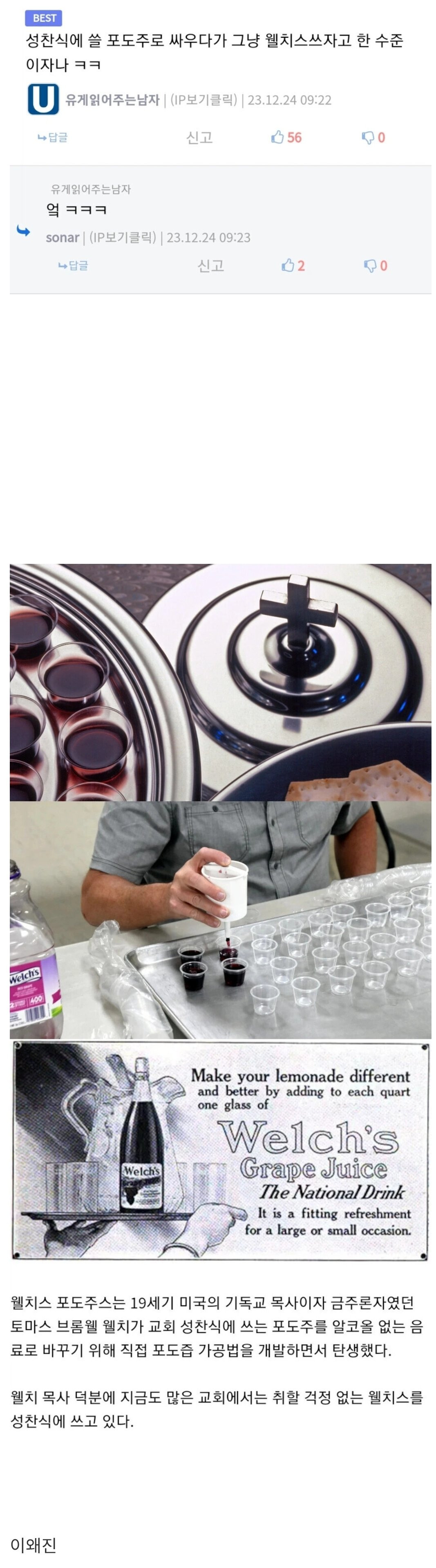 교회에서 포도주 대신 웰치스 써도 됨? 칠성그룹 0 244 0 2시간전 link URL 복사: https://joy.humorpick.com/bbs/board.php?bo_table=humor&wr_id=401695 0