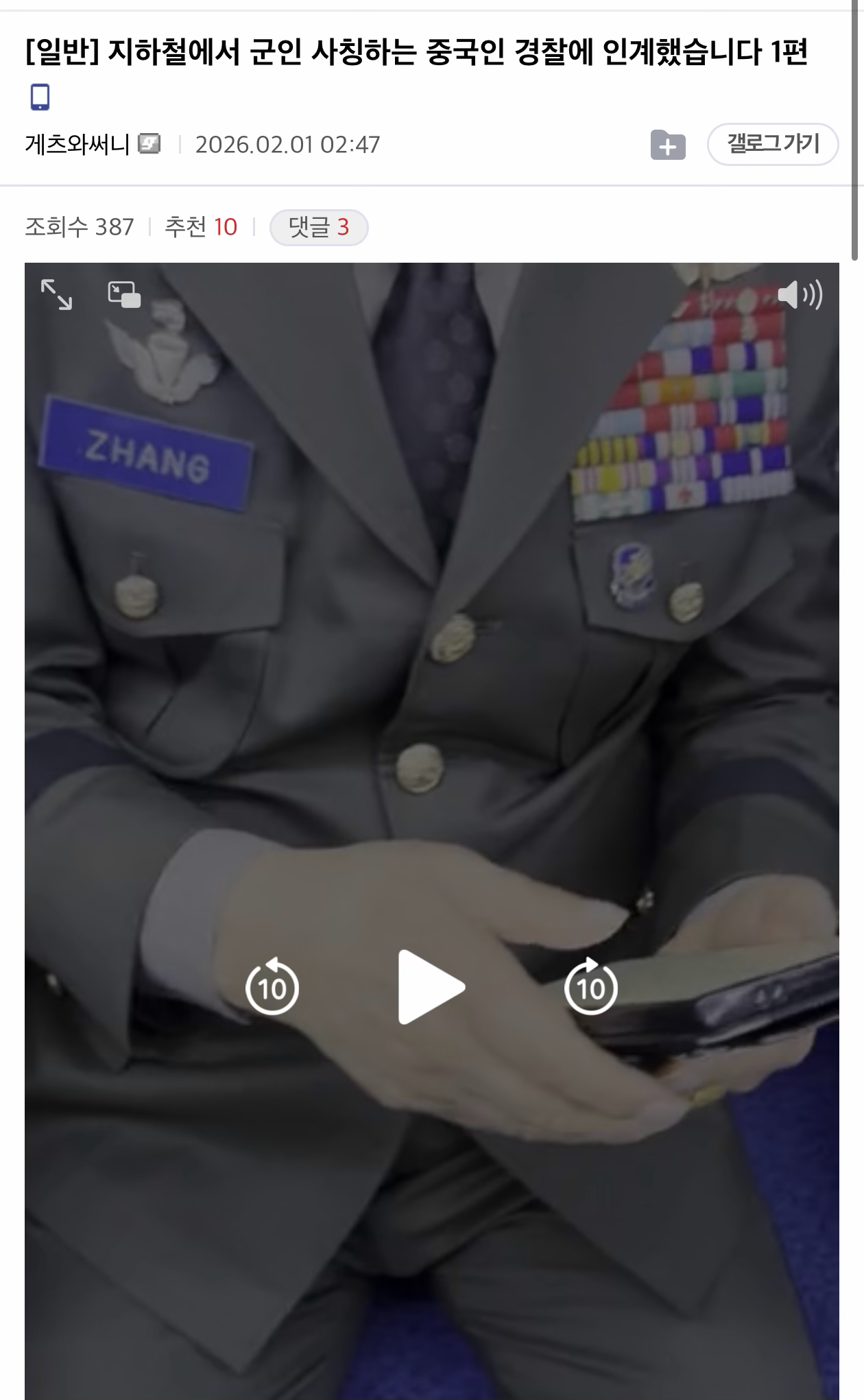 지하철에서 군인사칭하는 중국인 검거한 군인 픽시베이 0 108 0 2시간전 link URL 복사: https://joy.humorpick.com/bbs/board.php?bo_table=humor&wr_id=401793 지하철에서 군인사칭하는 중국인 검거한 군인 멋있네여 ㅎㅅㅎ 0