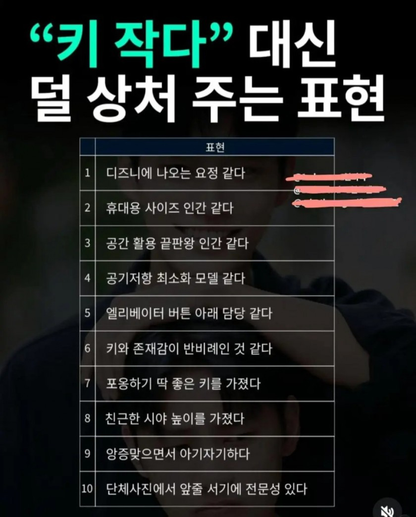 "키 작다" 대신 덜 상처주는 표현 아기물티슈 0 178 0 2시간전 link URL 복사: https://joy.humorpick.com/bbs/board.php?bo_table=humor&wr_id=401908 ㄷㄷ 0