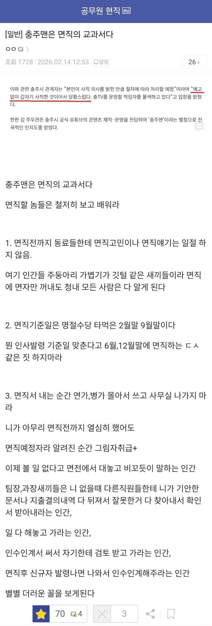 충주맨은 공무원 면직의 교과서다.jpg 라이츄 0 309 0 2시간전 link URL 복사: https://joy.humorpick.com/bbs/board.php?bo_table=humor&wr_id=402944 현명추 사실 일반 사기업에도 모두 적용되는 맞말이긴 함 0
