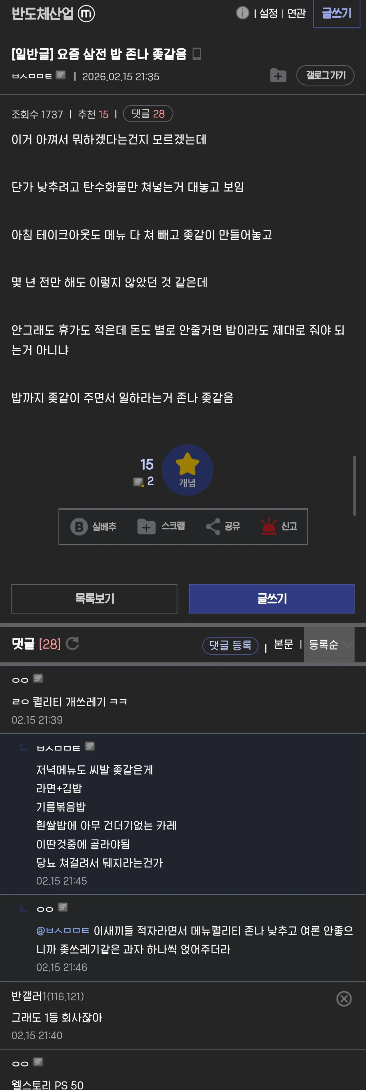 삼성전자 급식 근황 메이플 0 253 0 2시간전 link URL 복사: https://joy.humorpick.com/bbs/board.php?bo_table=humor&wr_id=402963 삼성웰스토리 작년 영업이익 1530억 원. 0