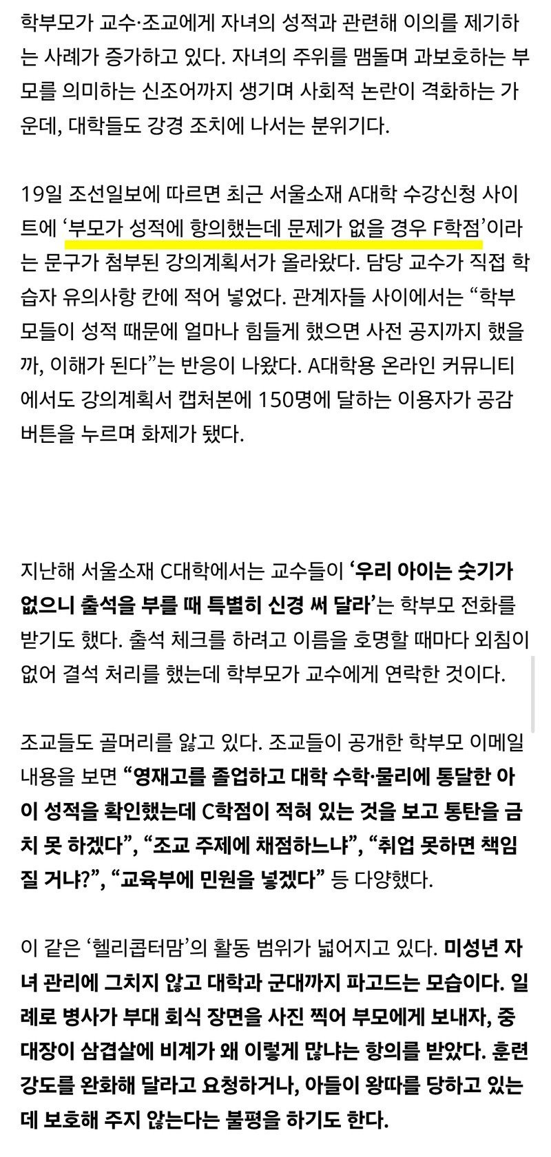 “똑똑한 우리 아들 성적이 왜 이래?”…더는 못 참겠다는 대학들 ‘부모 항의 시 F’ 우라칸 0 297 0 2시간전 link URL 복사: https://joy.humorpick.com/bbs/board.php?bo_table=humor&wr_id=403261 0