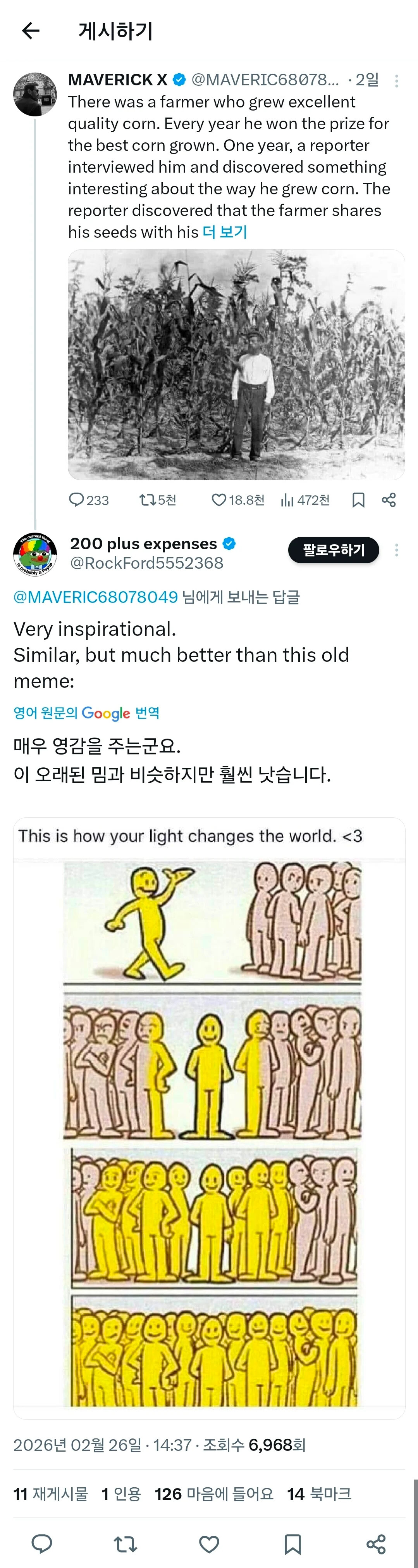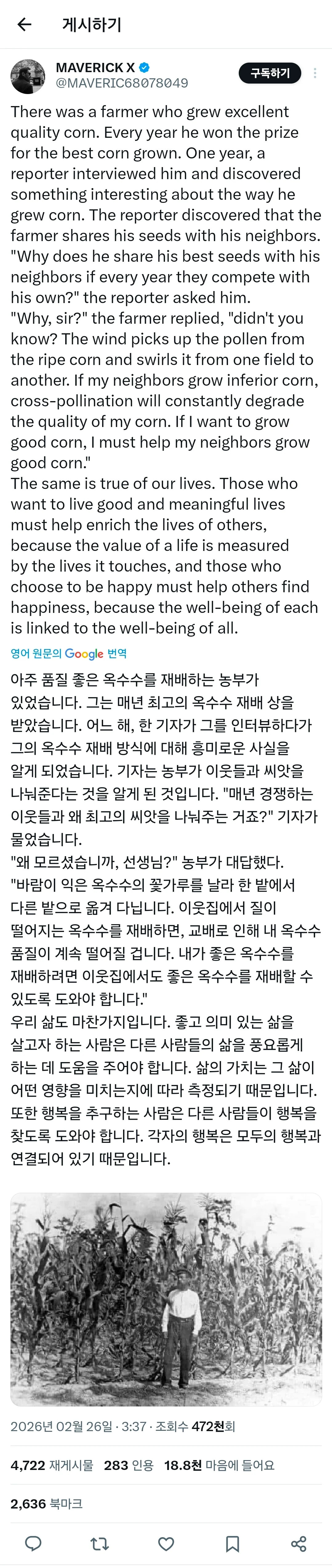 농부가 좋은 씨앗을 이웃들에게 나눠준 이유.jpg 수민이에여 0 122 0 2시간전 link URL 복사: https://joy.humorpick.com/bbs/board.php?bo_table=humor&wr_id=404180 0