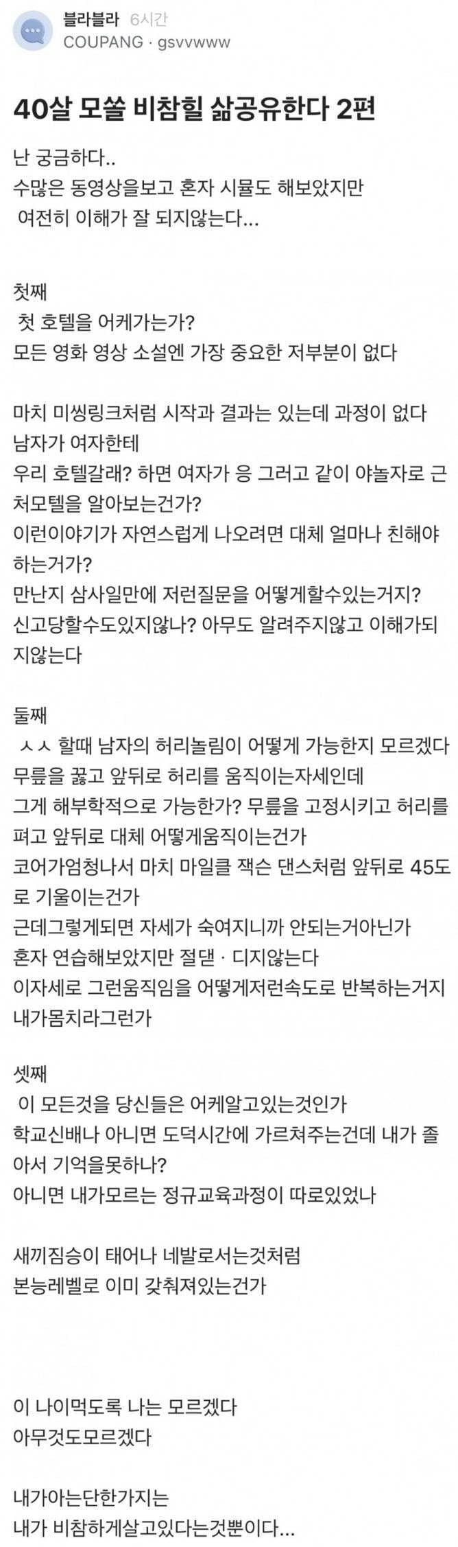 40대 모쏠의 비참한 삶 버디버디 0 299 0 3시간전 link URL 복사: https://joy.humorpick.com/bbs/board.php?bo_table=humor&wr_id=405494 이 문장이 보이면 video 태그를 지원 하지 않는 브라우저 입니다. 0