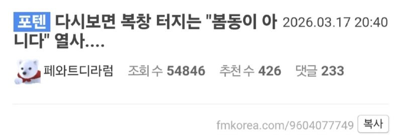 다시보면 복창 터지는 "봄동이 아니다" 열사.... 라이츄 0 317 0 4시간전 link URL 복사: https://joy.humorpick.com/bbs/board.php?bo_table=humor&wr_id=405554 0