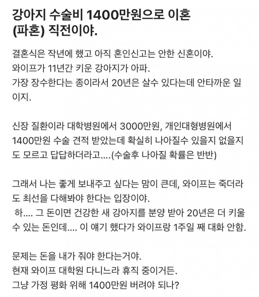 강아지 수술비 1400만원으로 이혼 직전이야... 큐플레이 0 297 0 2시간전 link URL 복사: https://joy.humorpick.com/bbs/board.php?bo_table=humor&wr_id=405760 [댓글 반응] 0