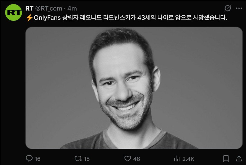 onlyfans 소유자 사망 슬라임 0 180 0 4시간전 link URL 복사: https://joy.humorpick.com/bbs/board.php?bo_table=humor&wr_id=405937 자산이 11조라는데 인생 참.. 0