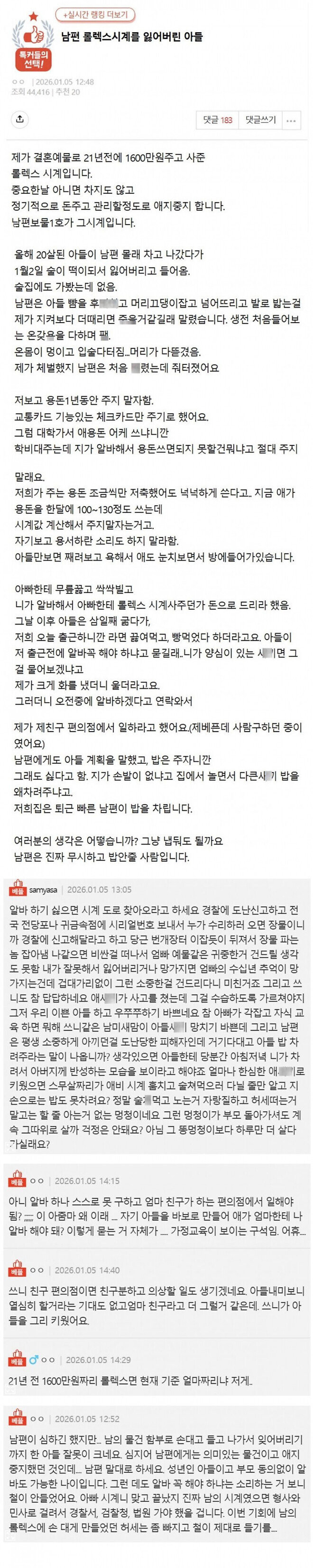 아버지가 시계 때문에 아들 미친듯이 때린 썰 버디버디 0 242 0 2시간전 link URL 복사: https://joy.humorpick.com/bbs/board.php?bo_table=humor&wr_id=406729 어떻게 생각하시나요?? 0
