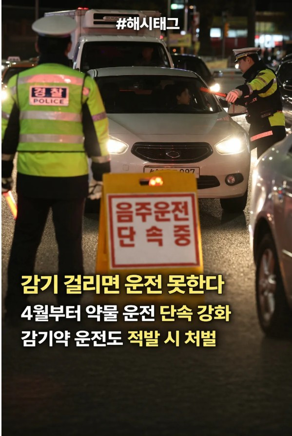 4월부터 감기약 먹고 운전하면 처벌 아기물티슈 0 232 0 2시간전 link URL 복사: https://joy.humorpick.com/bbs/board.php?bo_table=humor&wr_id=406904 4월부터 약물 운전에 대한 단속이 강화되면서 감기약을 복용한 뒤 운전하는 경우도 적발 시 처벌 대상이 될 수 있어요 졸음이나 판단력 저하를 유발하는 성분이 포함된 약을 복용했을 경우, 음주운전과 마찬가지로 사고 위험이 높아질 수 있기 때문이에요 운전 전 복용한 약의 성분을 확인하고, 필요하면 운전을 피하는 등 주의가 필요해졌어요. 0