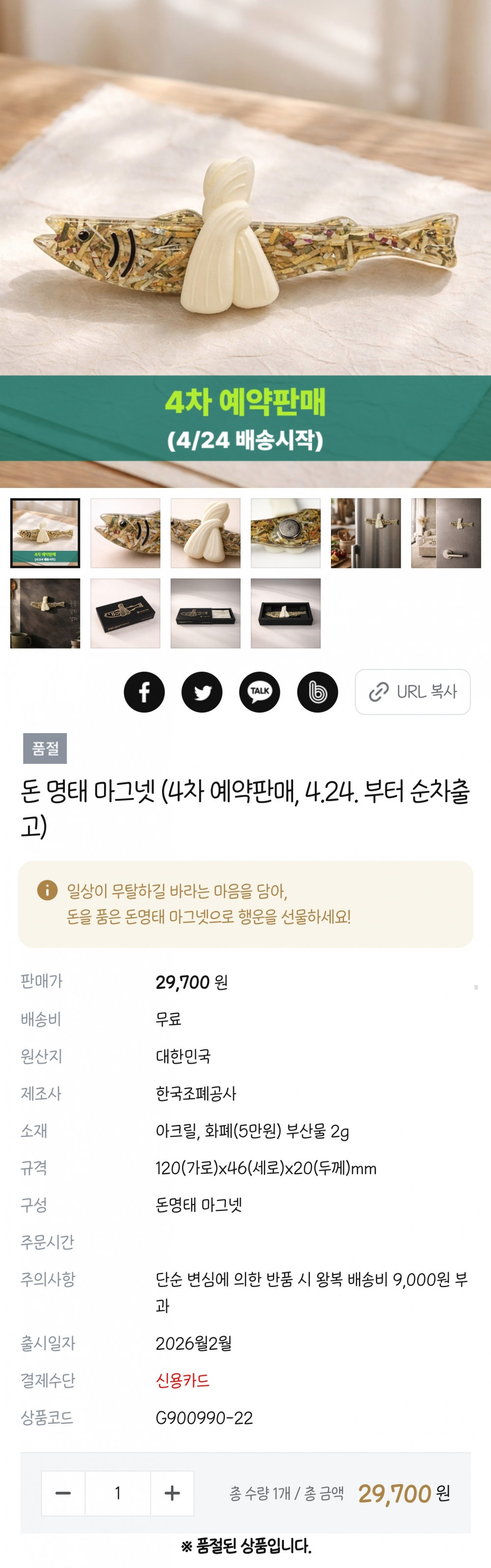 예판 족족 품절 된다는 한국조폐공사의 돈 명태 마그넷 수민이에여 0 187 0 5시간전 link URL 복사: https://joy.humorpick.com/bbs/board.php?bo_table=humor&wr_id=407073 오만원 지폐 부산물로 만듬 4차 예판까지 나오고 현재 품절 https://www.koreamint.com/goods/detail.do?gno=11637 0