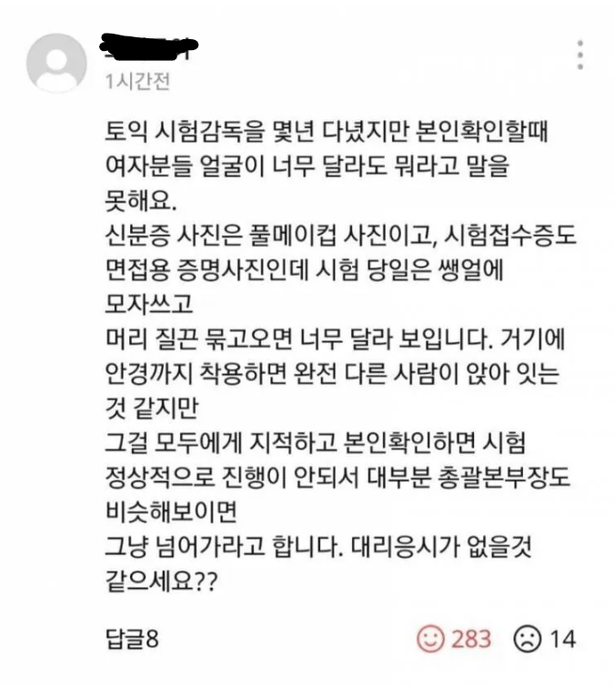 의외로 잘 모르는 토익 감독관들의 고충 오크대장 0 251 0 2시간전 link URL 복사: https://joy.humorpick.com/bbs/board.php?bo_table=humor&wr_id=407354 0