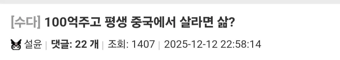 100억 받고 평생 중국에서 살 수 있어? 큐플레이 0 269 0 2시간전 link URL 복사: https://joy.humorpick.com/bbs/board.php?bo_table=humor&wr_id=407954 (현금100억 받는 대신에 평생을 중국에서만 살기)100억이 조스로 보이냐 가능하다 vs 불가능 0