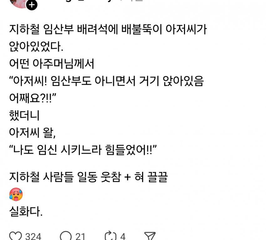임산부석 아저씨 썰 아기물티슈 0 330 0 3시간전 link URL 복사: https://joy.humorpick.com/bbs/board.php?bo_table=ssul&wr_id=1520 0