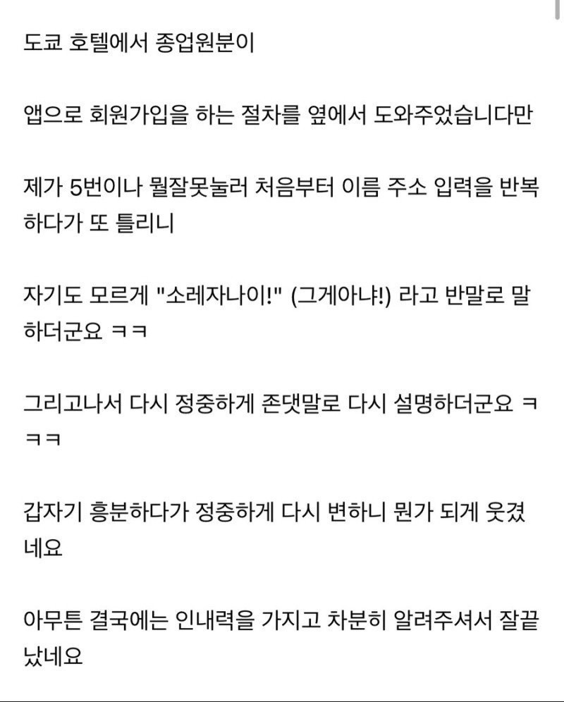 일본에서 종업원한테 반말 들었던 썰 버디버디 0 262 0 2시간전 link URL 복사: https://joy.humorpick.com/bbs/board.php?bo_table=ssul&wr_id=2143 0