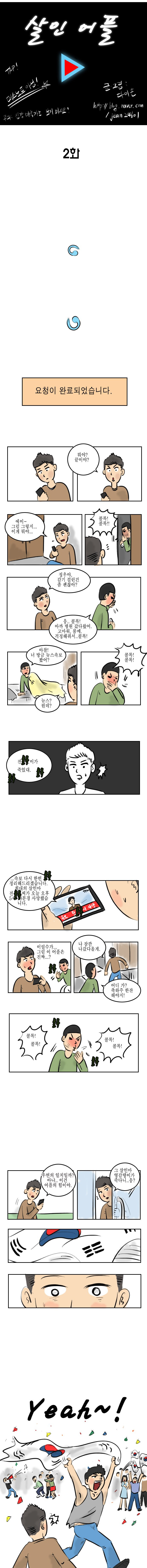 만화) 살인어플 -2- 김밤비 0 143 0 01.09 06:00 link URL 복사: https://joy.humorpick.com/bbs/board.php?bo_table=toon&wr_id=6387 프롤로그 : http://todayhumor.com/?humordata_1794948 1화 : http://todayhumor.com/?humordata_1795362 0